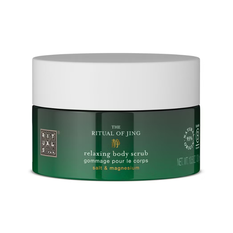 Indulge in a soothing exfoliation with The Ritual of Jing Body Scrub. Made with 92% natural origin ingredients, this magnesium-rich salt scrub gently buffs away dead skin cells while nourishing with a blend of hydrating oils. Known for its anti-stress properties, magnesium helps keep skin balanced and healthy. As you massage it in, enjoy the calming scent of sacred lotus and jujube.